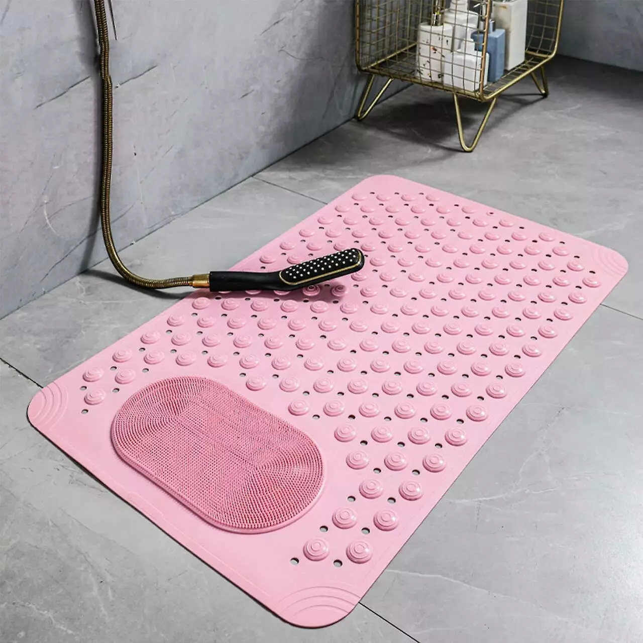 Коврик атискользящий для ванной комнаты и душа,массажный для ног силиконовый с присосками, розовый 36.5х69 см