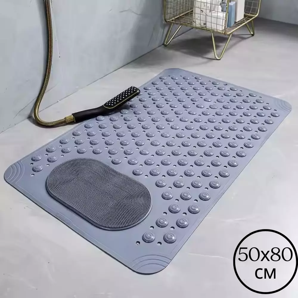 Коврик атискользящий для ванной комнаты и душа,массажный для ног силиконовый с присосками, серый 50х80 см
