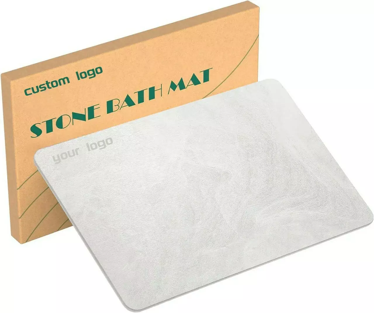Коврик диатомитомитовый для душа и ванной комнаты,кухни,прихожей каменный 60х39 см цвет белый