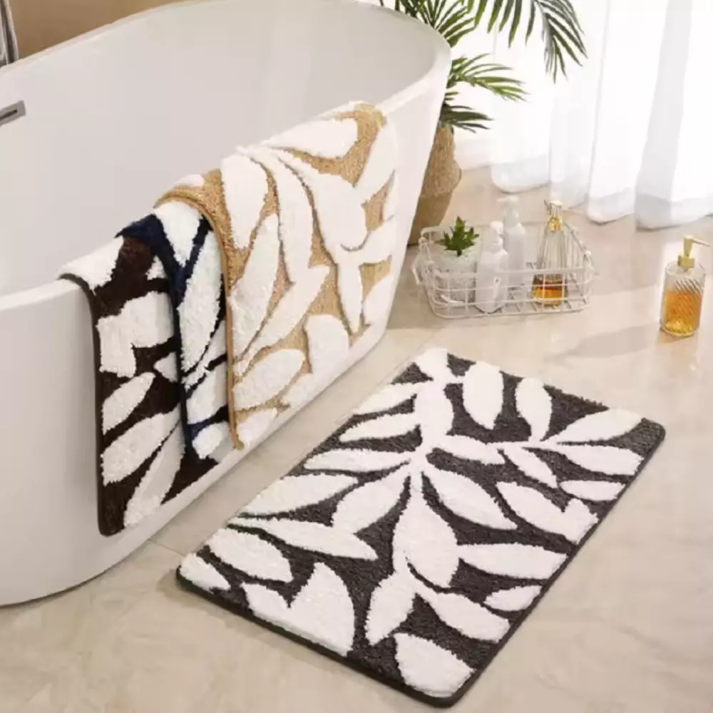 Коврик для ванной и душа коврик для ног в ванную комнату,микрофибра,атискользящий 40х60 см,серый с листьями