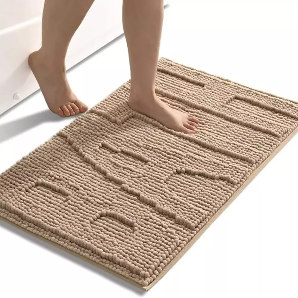 надписью "Bath" приятна на ощупь и делает коврик не только