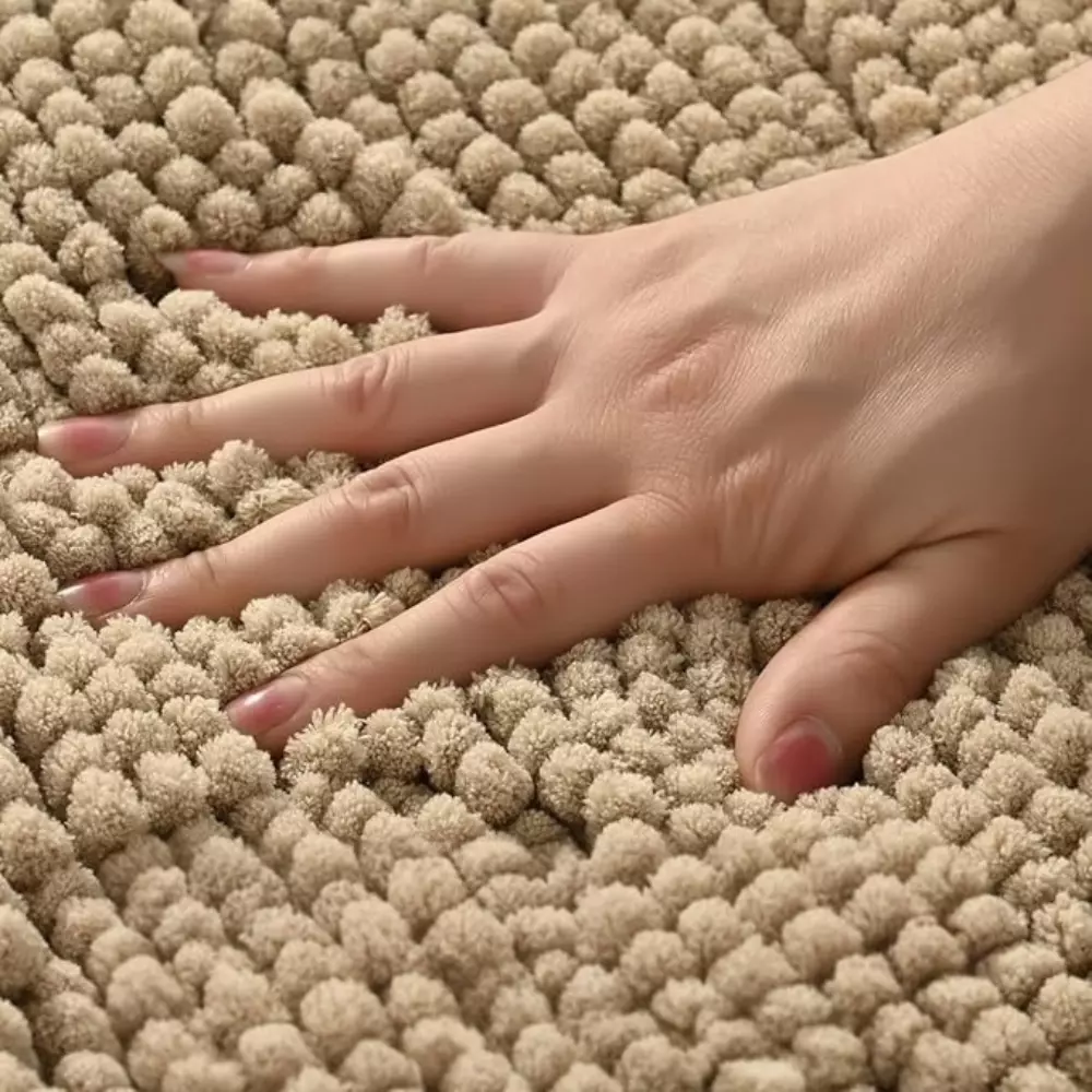 Коричневый коврик для ванной из микрофибры шинилл добавит уюта и
