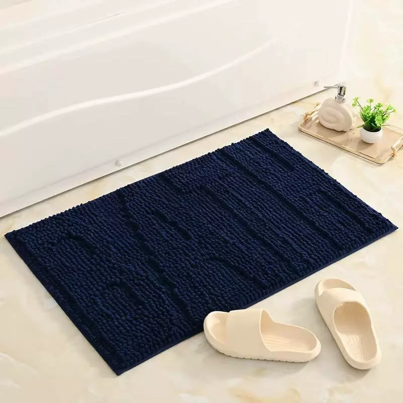 Синий коврик для ванной из микрофибры шинилл станет стильным и