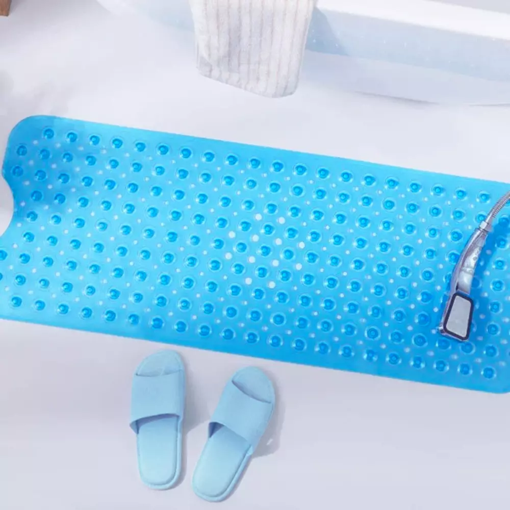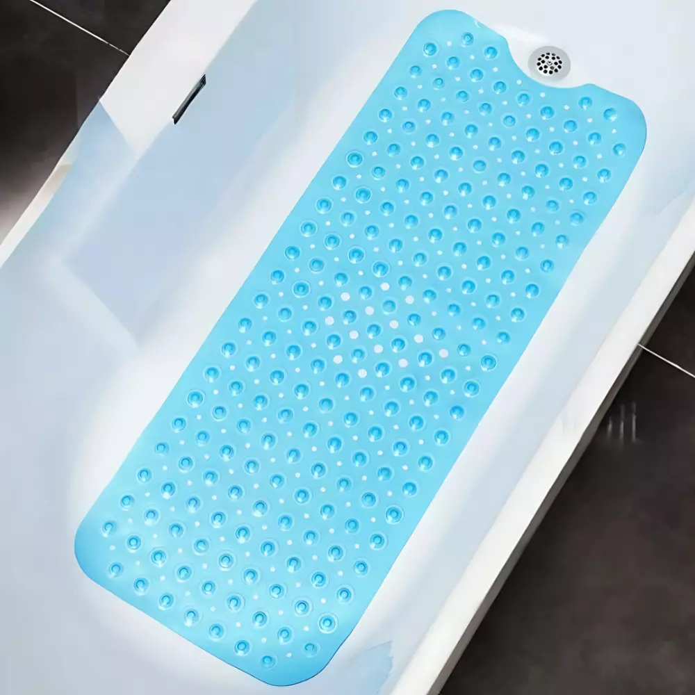 Коврик для ванной комнаты и душа атискользящий,для тела массажный силиконовый с присосками,синий, 40х100 см