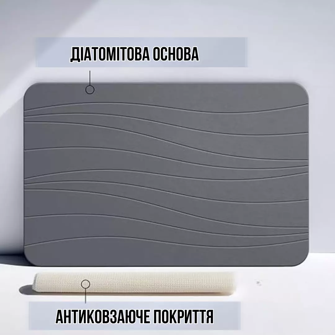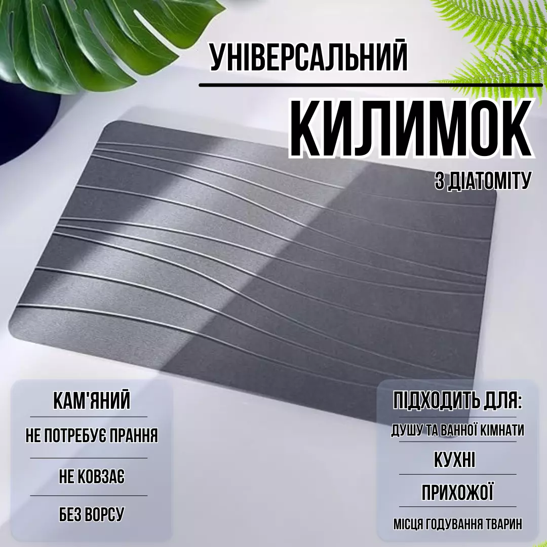 Коврик из диатомита для душа и ванной комнаты, кухни, прихожей, каменный, универсальный серый цвет