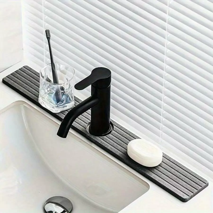 Коврик-накладка для смесителя на раковину в кухню или ванную комнату,каменный,диатомитовый,цвет тёмно-серый
