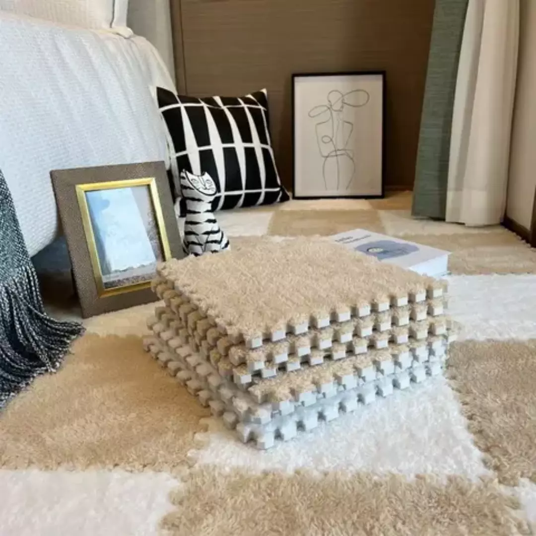 Коврик-пазл с плюшевым покрытием, термоковрик, мягкий детский мат, 90×120см, 12 пазлов, цвет бежевый