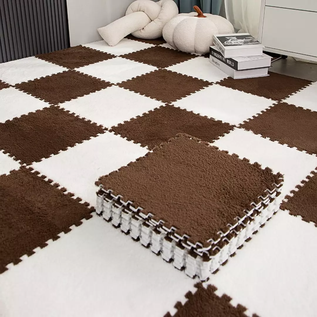 Коврик-пазл с плюшевым покрытием, термоковрик, мягкий детский мат, 90×120см, 12 пазлов, цвет коричневый