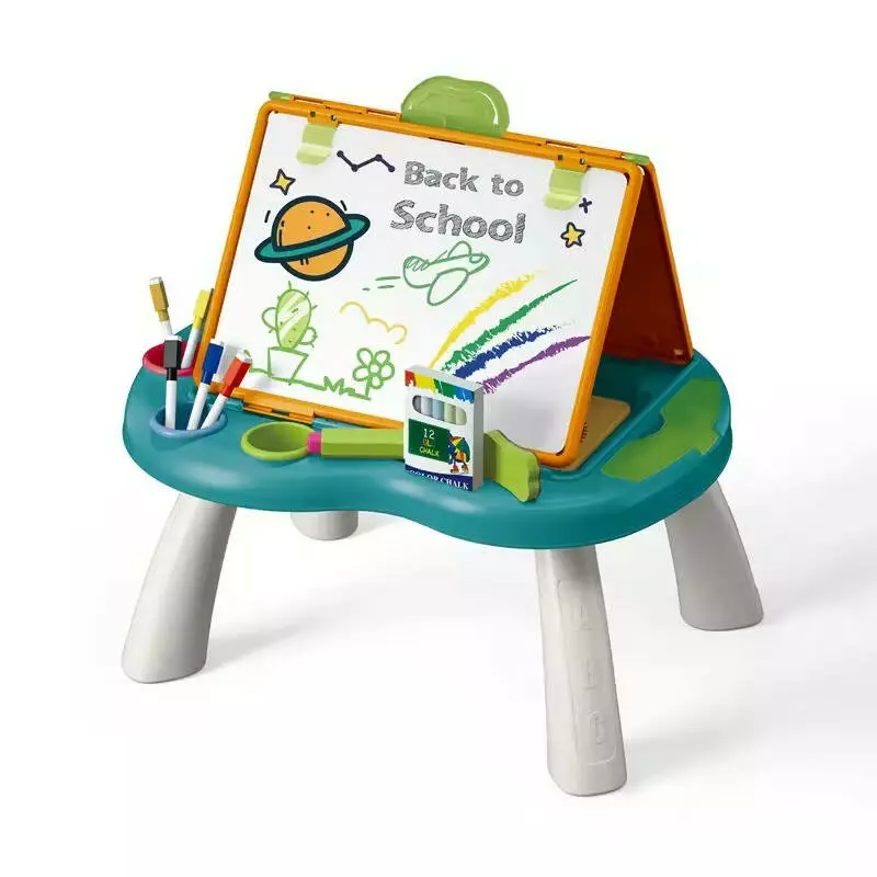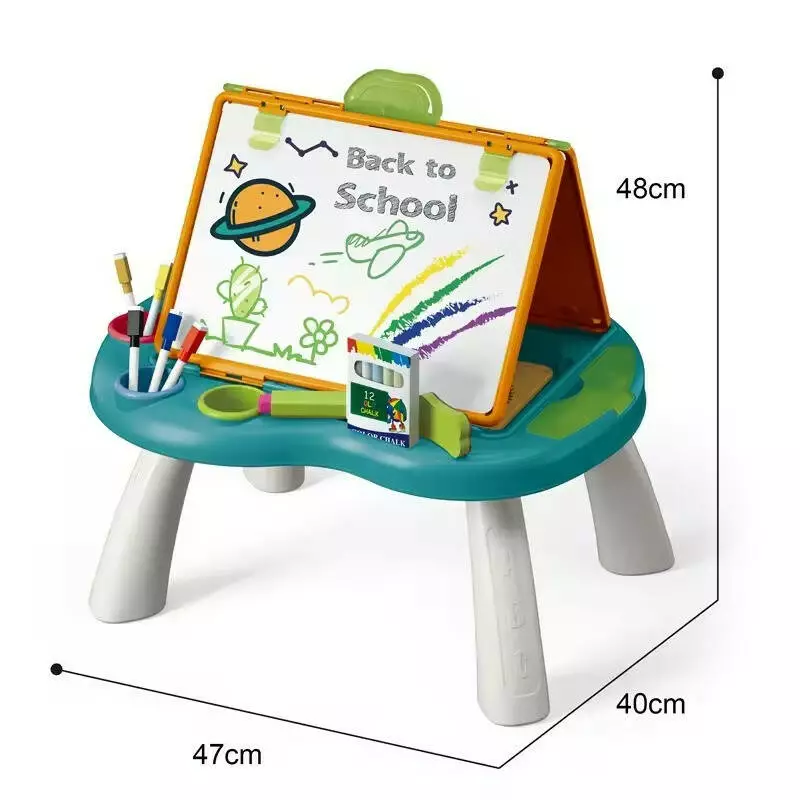 Доска имеет режим складывания, что облегчает её хранение и транспортировку. В комплекте поставляются пять листов бумаги и множество аксессуаров для рисования, которые помогут детям развивать свои навыки. Стабильная конструкция на основе пластика гарантирует долговечность, экологичность и безопасность использования.