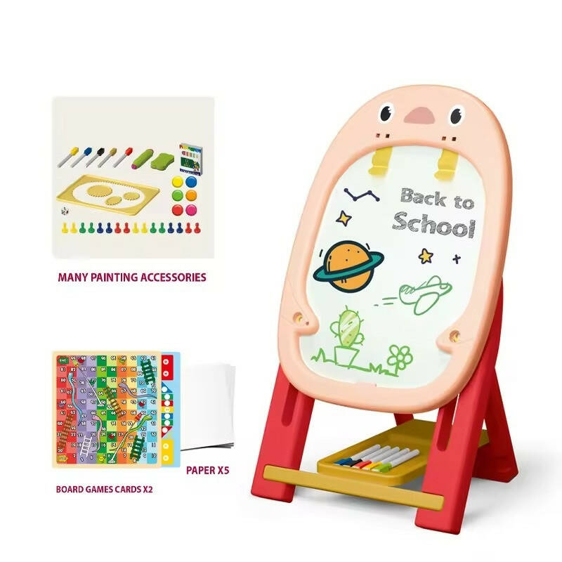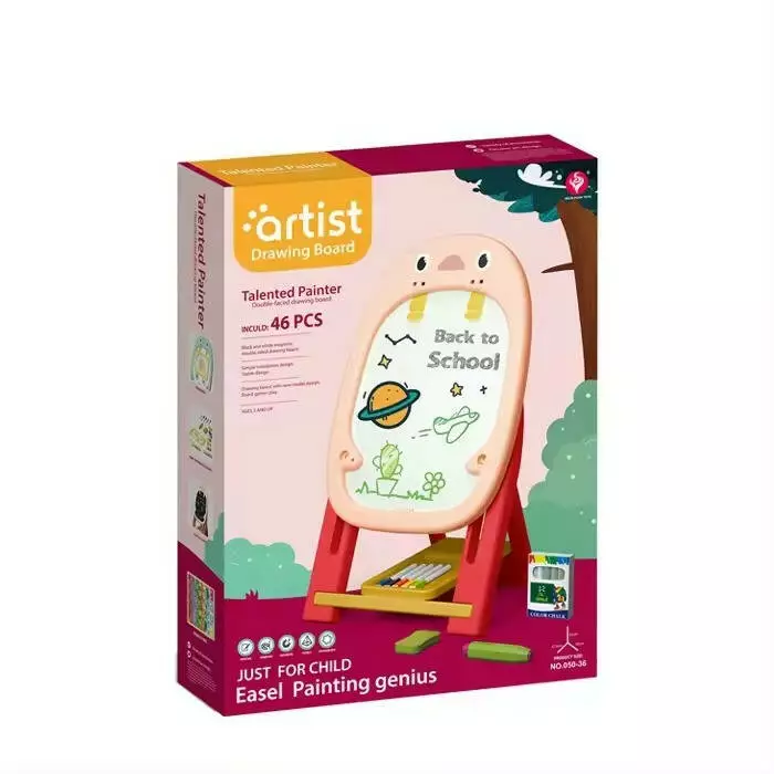 Доска имеет режим складывания, что облегчает её хранение и транспортировку. В комплекте поставляются пять листов бумаги и множество аксессуаров для рисования, которые помогут детям развивать свои навыки. Стабильная конструкция на основе пластика гарантирует долговечность, экологичность и безопасность использования.