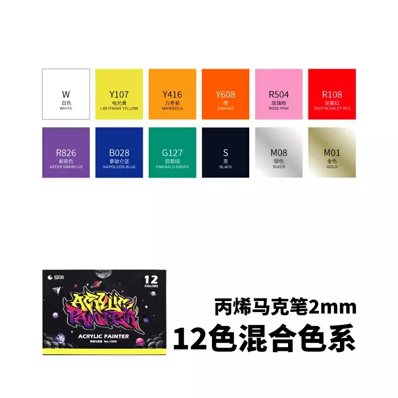 Маркеры акриловые STA для рисования, премиум качество, набор 12 цветов, маркеры для ткани, дерева и керамики