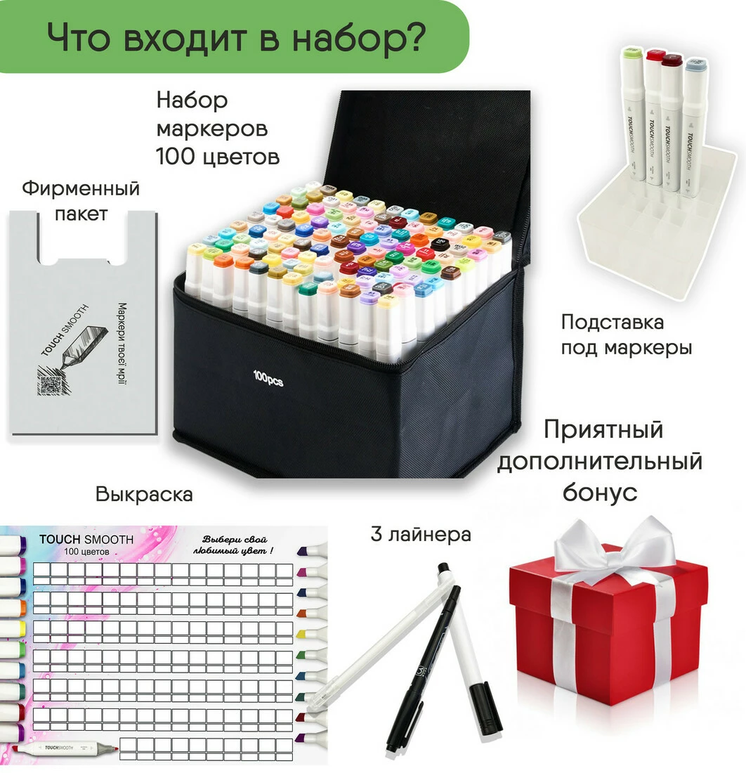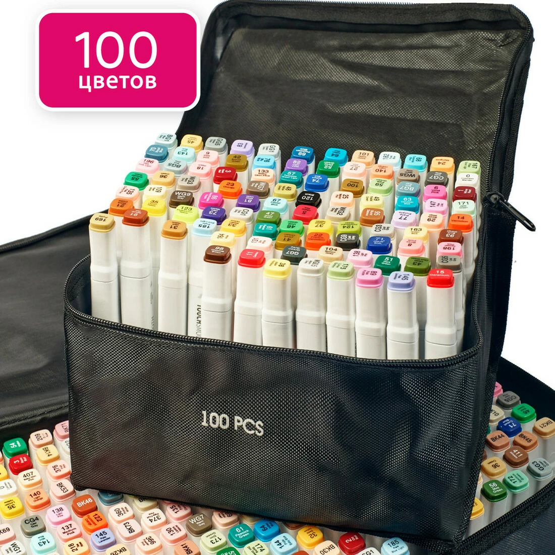 Маркеры для скетчинга 100 шт TOUCH Smooth, Набор двусторонних маркеров для скетчинга на спиртовой основе