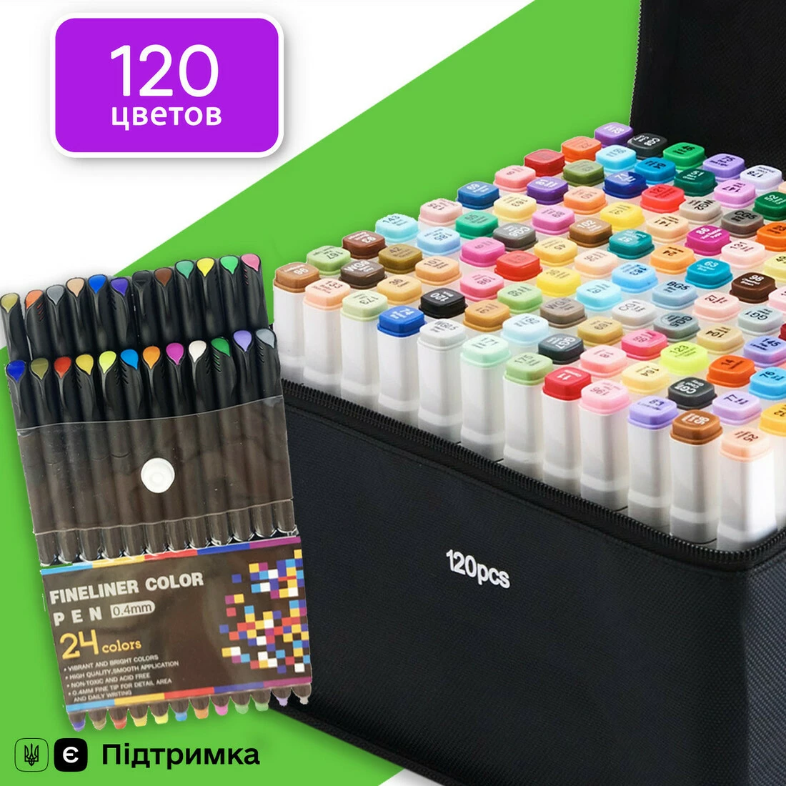 Вы покупаете Набор двусторонних маркеров Touch Smooth для скетчинга на спиртовой основе 120 шт и вместе с ними получаете набор качественных лайнеров 24 цвета диаметром 0.4 мм