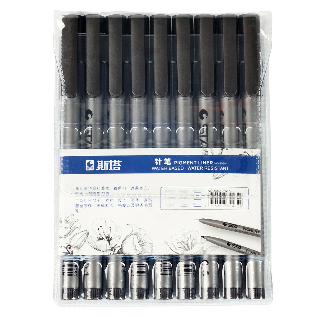 Лайнеры - практичный и удобный инструмент для художников, дизайнеров, архитекторов. Удобен при использовании линейки и трафарета. В наборе представлено 9 размеров: 0.05 мм, 0.1 мм, 0.2 мм, 0.3 мм,0.4, 0.5 мм, 0.6 мм, 0.8 мм и кисточка brush
