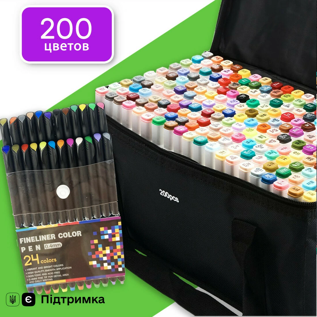 Маркеры двусторонние Touch 200 цветов и набор лайнеров 24 цвета для эскизов и скетчей, набор фломастеров