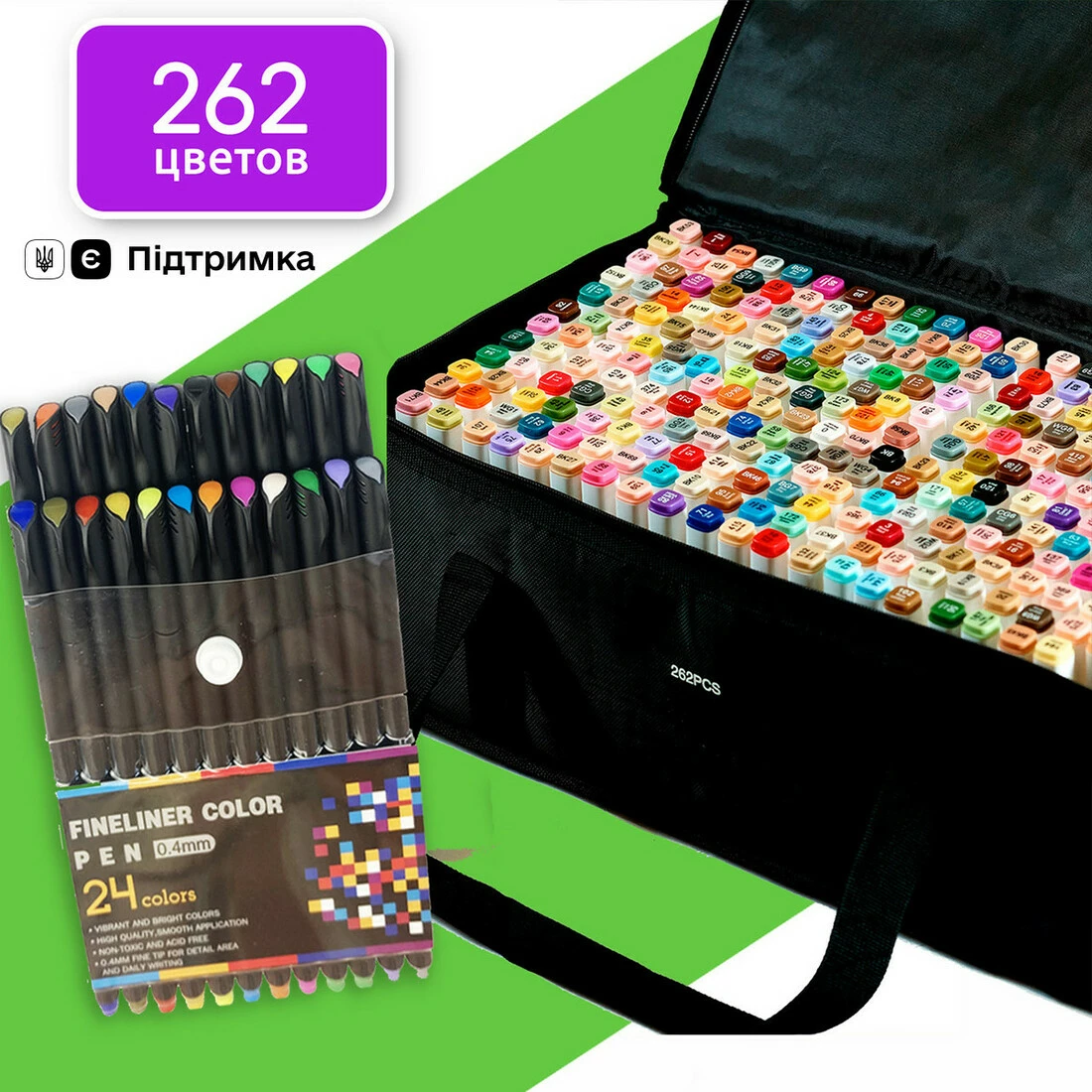 Маркеры двусторонние Touch 262 цветов и набор лайнеров 24 цвета для эскизов и скетчей, набор фломастеров