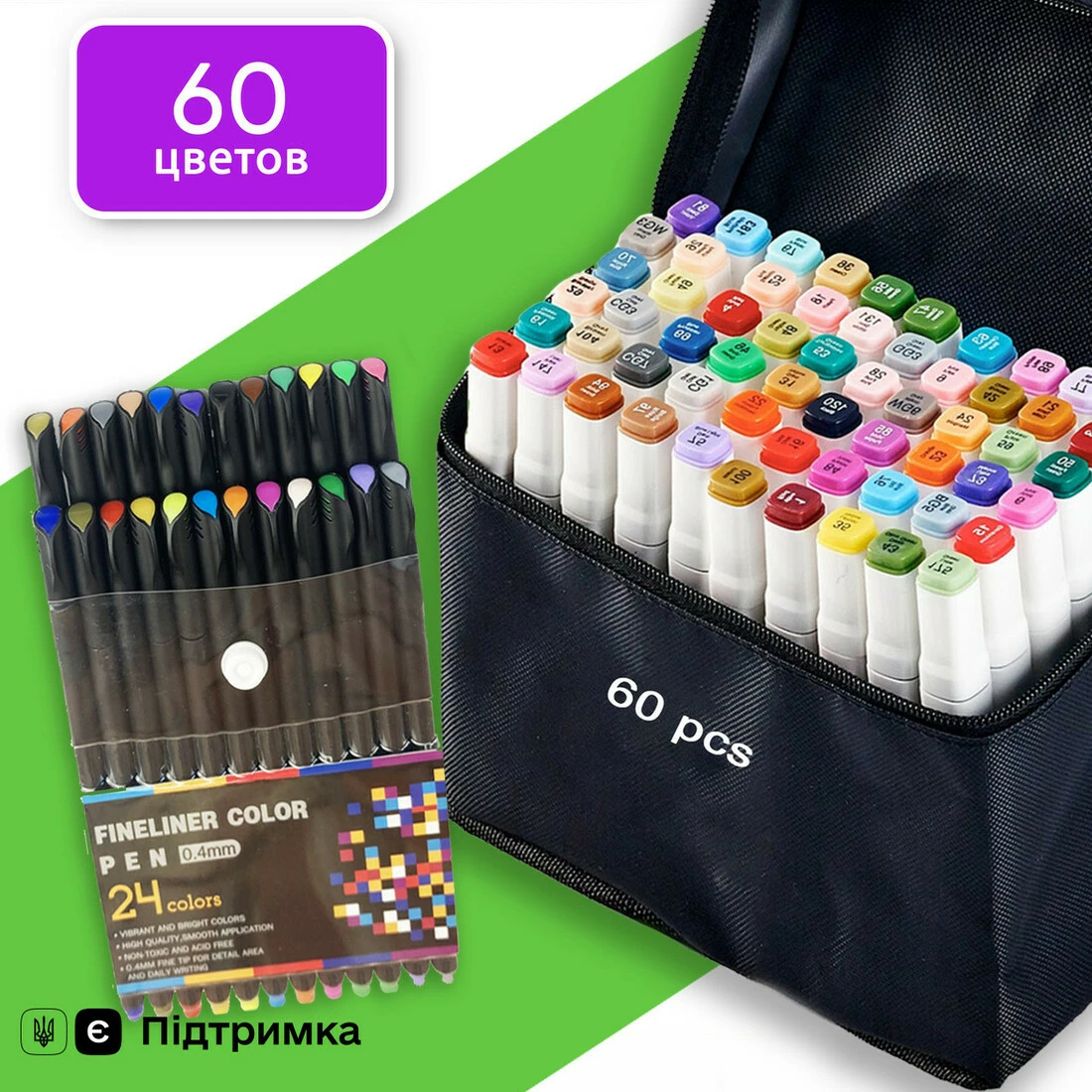 Вы покупаете Набор двусторонних маркеров Touch Smooth для скетчинга на спиртовой основе 60 шт и вместе с ними получаете набор качественных лайнеров 24 цвета диаметром 0.4 мм