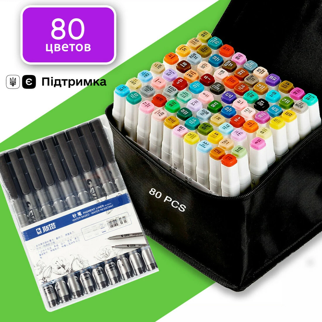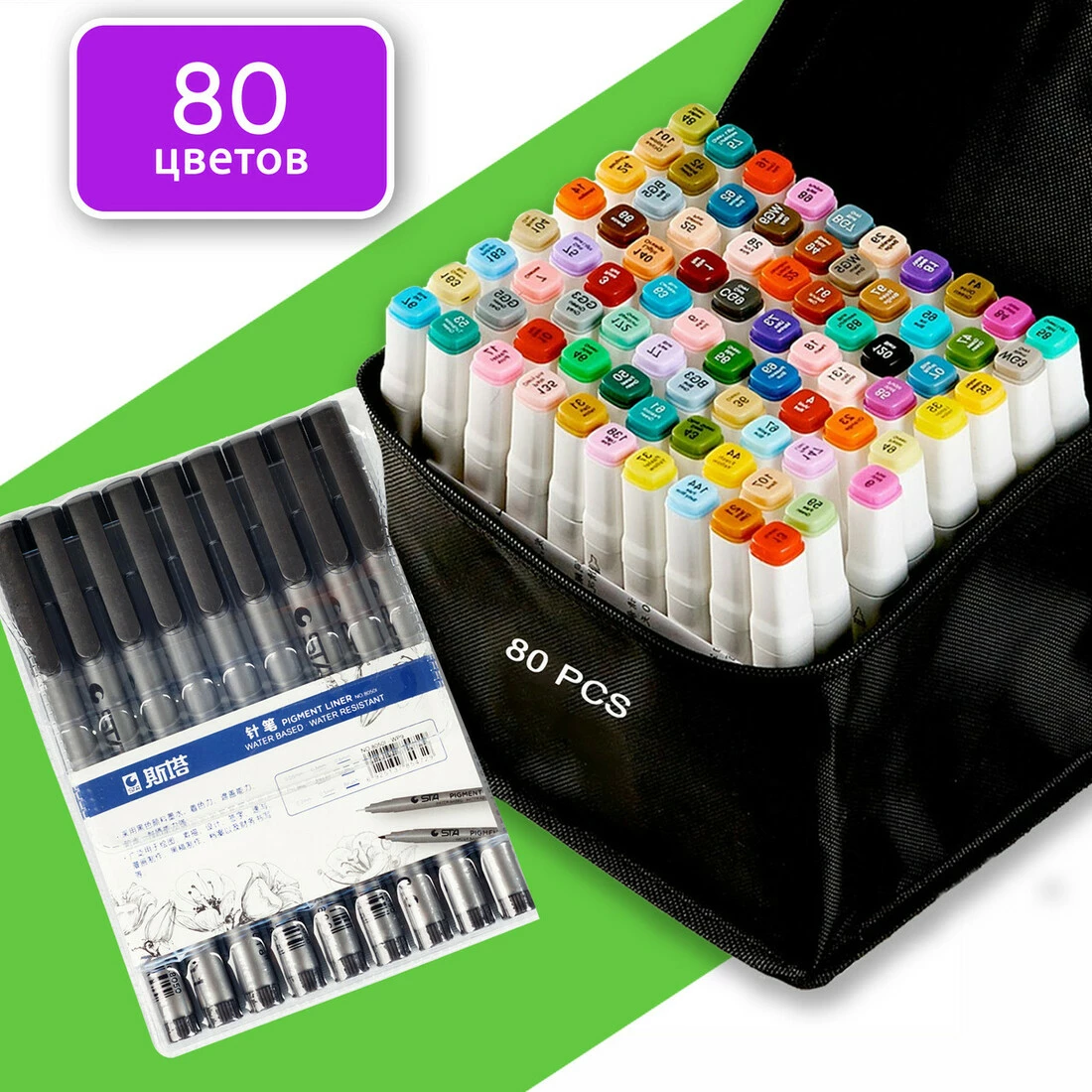 Маркеры двусторонние Touch 80 цветов и набор лайнеров 9 шт для эскизов и скетчей, набор фломастеров