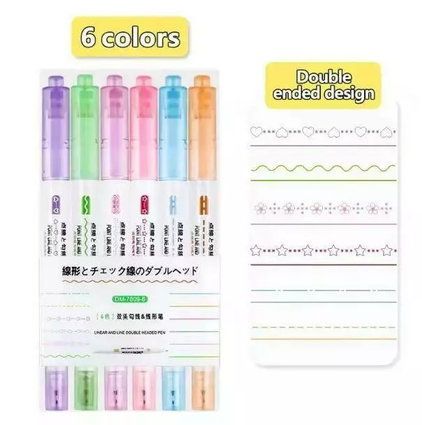 Маркеры фигурные для творчества скетчинга, двухсторонние маркеры четкие линии и роликовый штамп, 6 цветов