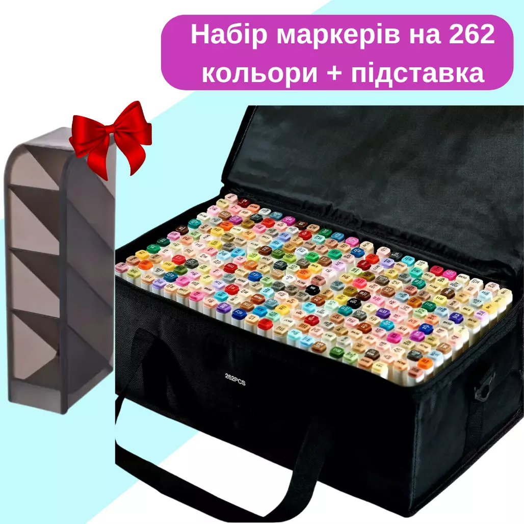 Маркеры Touch Smooth набор 262 шт для рисования спиртовые,двухсторонние+Чёрная подставка для маркеров