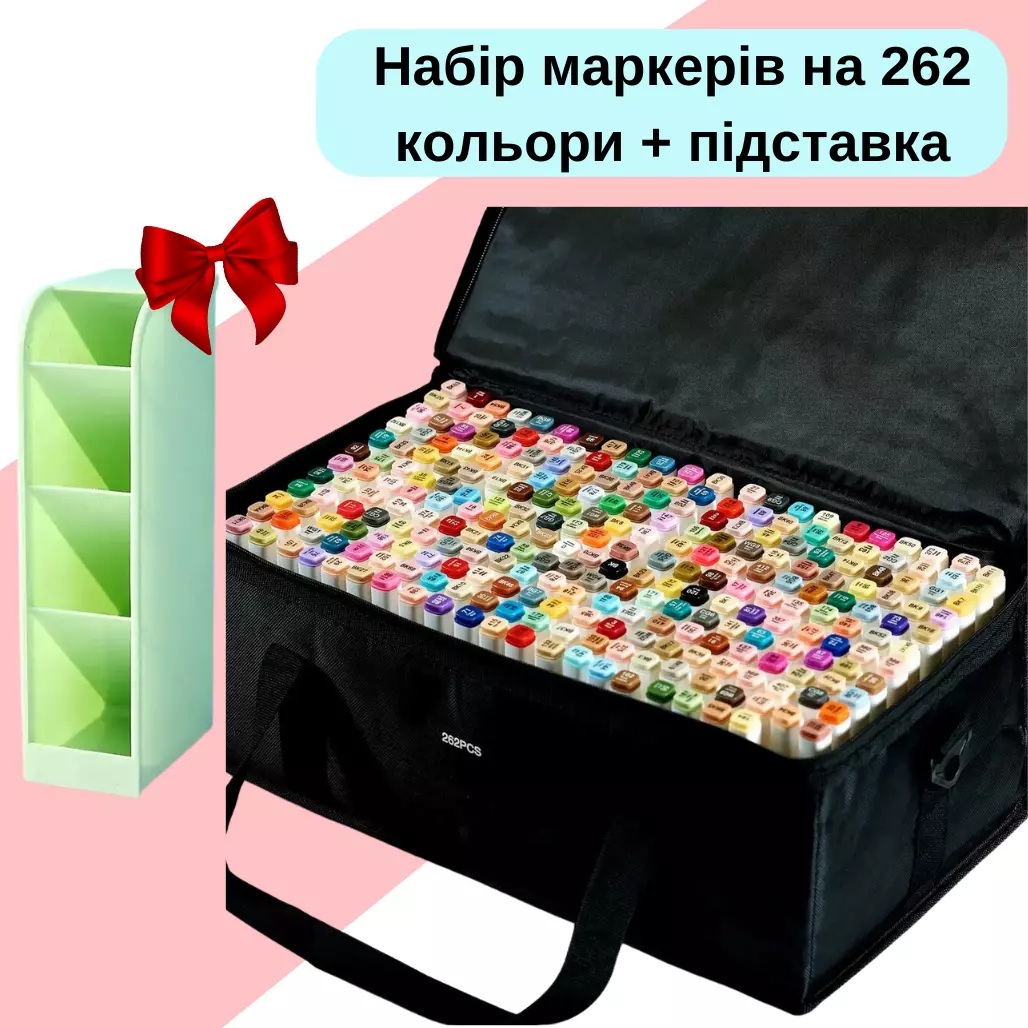 Маркеры Touch Smooth набор 262 шт для рисования спиртовые,двухсторонние+Зеленая подставка для маркеров