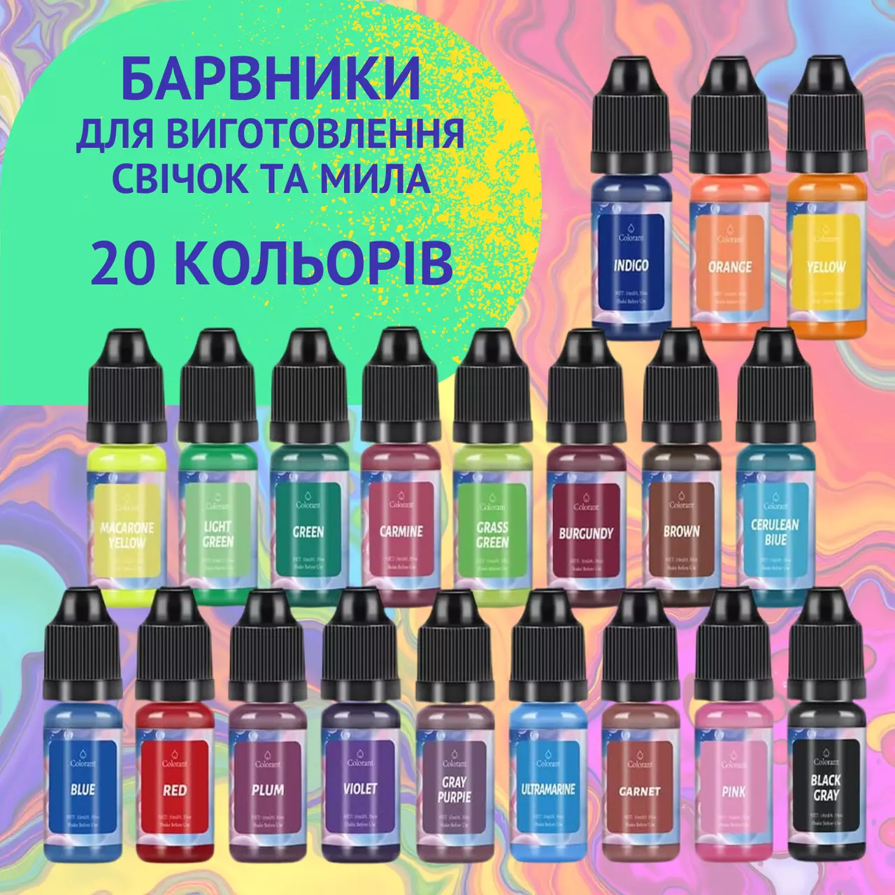Набор жидких красителей, 20 насыщенных цветов - идеально подойдет