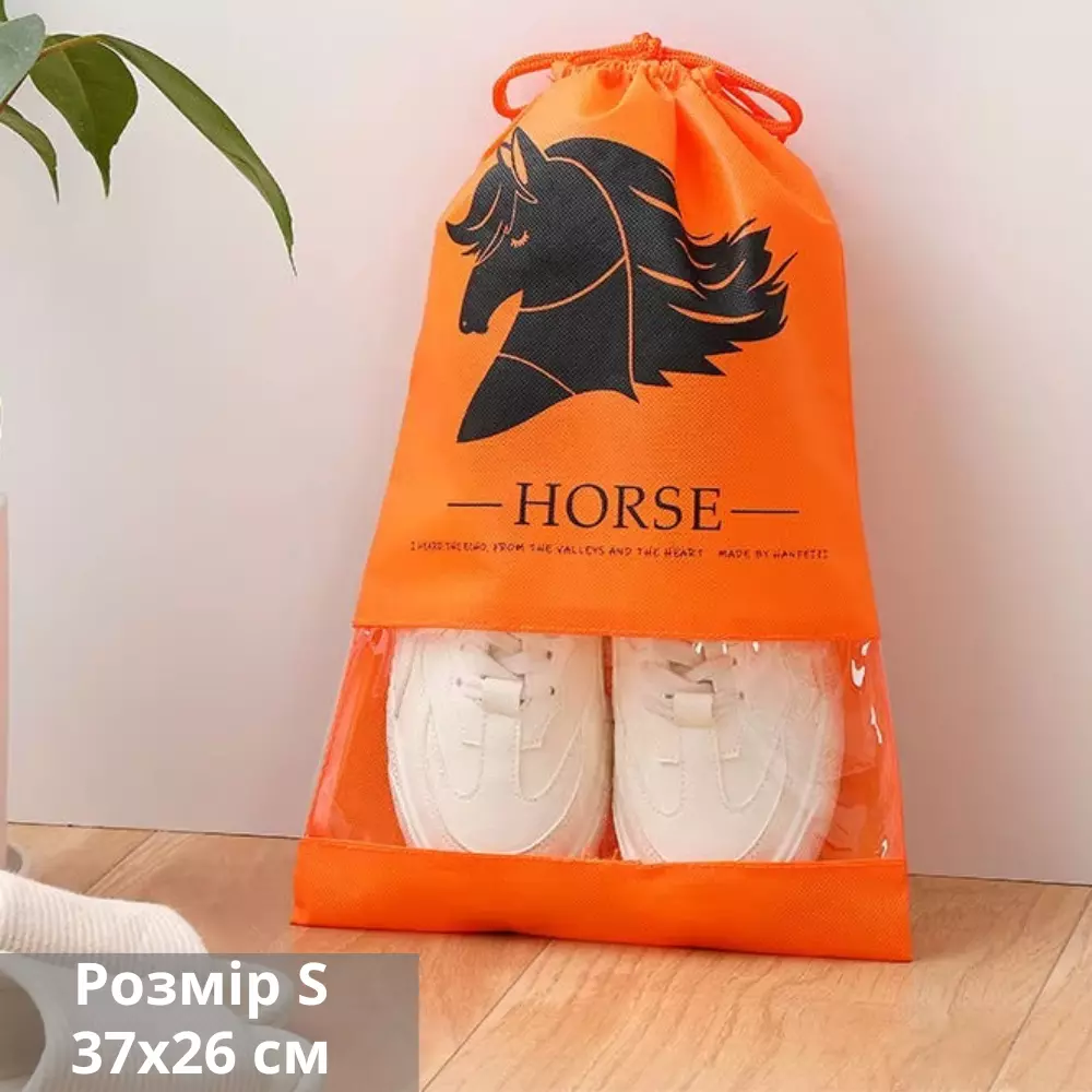 Мешок-сумка для обуви на затяжках, транспортировочная на шнурках для вещей, размер S - 37х26 см,цвет оранжевый