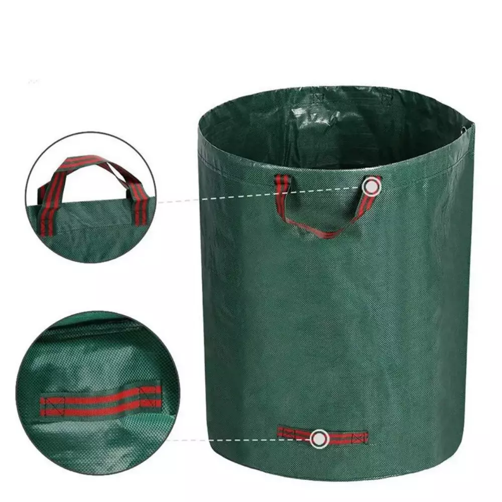 Мешок оснащён тремя ручками: две — для переноски, одна боковая — для удобного опорожнения. Отлично подходит для сбора листьев, травы, сорняков, веток и другого садового мусора. Универсальное и практичное решение для сезонных работ в саду.