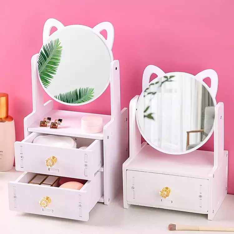 Мини-шкафчик с зеркалом, настольный органайзер для косметики с 2 ящиками, органайзер для украшений