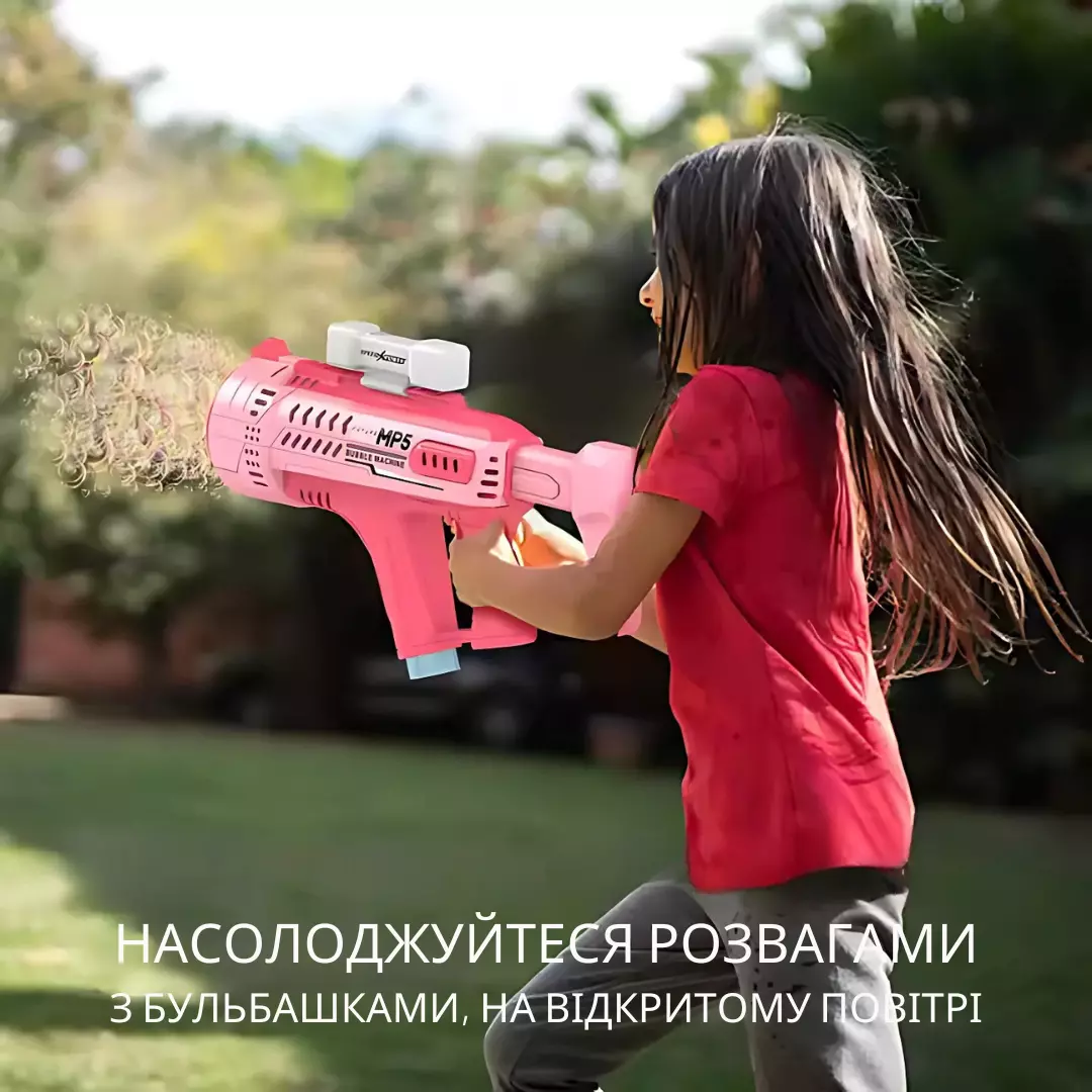 Генератор мыльных пузырей работает от литиевого аккумулятора с возможностью подзарядки, что избавляет от необходимости постоянно менять батарейки. Управление максимально простое: достаточно налить мыльный раствор в специальный резервуар, нажать кнопку — и пространство наполняется волшебными пузырями. Пистолет выполнен из прочного и безопасного ABS-пластика, не содержащего токсичных веществ, поэтому подходит для детей.