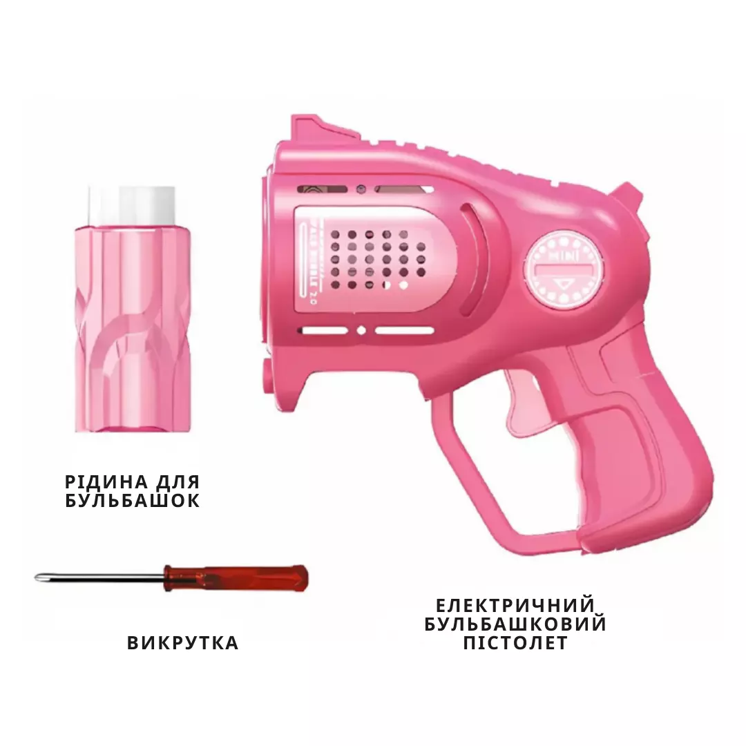 Комплектация: пузырьковый пистолет, бутылка с раствором (150 мл), отвертка