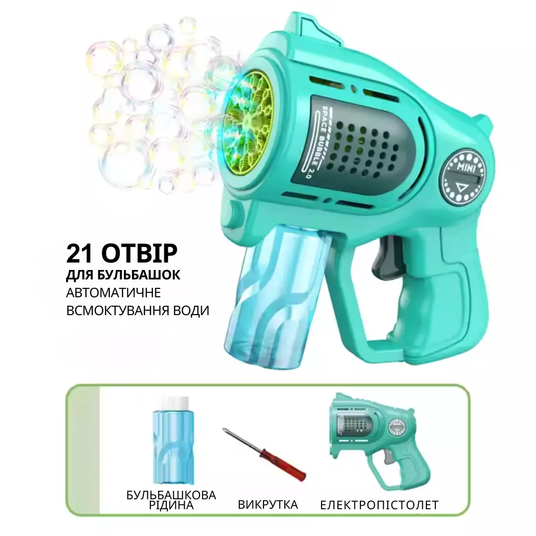 Мыльные пузыри для детей, пистолет для мыльных пузырей с подсветкой, игрушечный генератор пузырей, зеленый