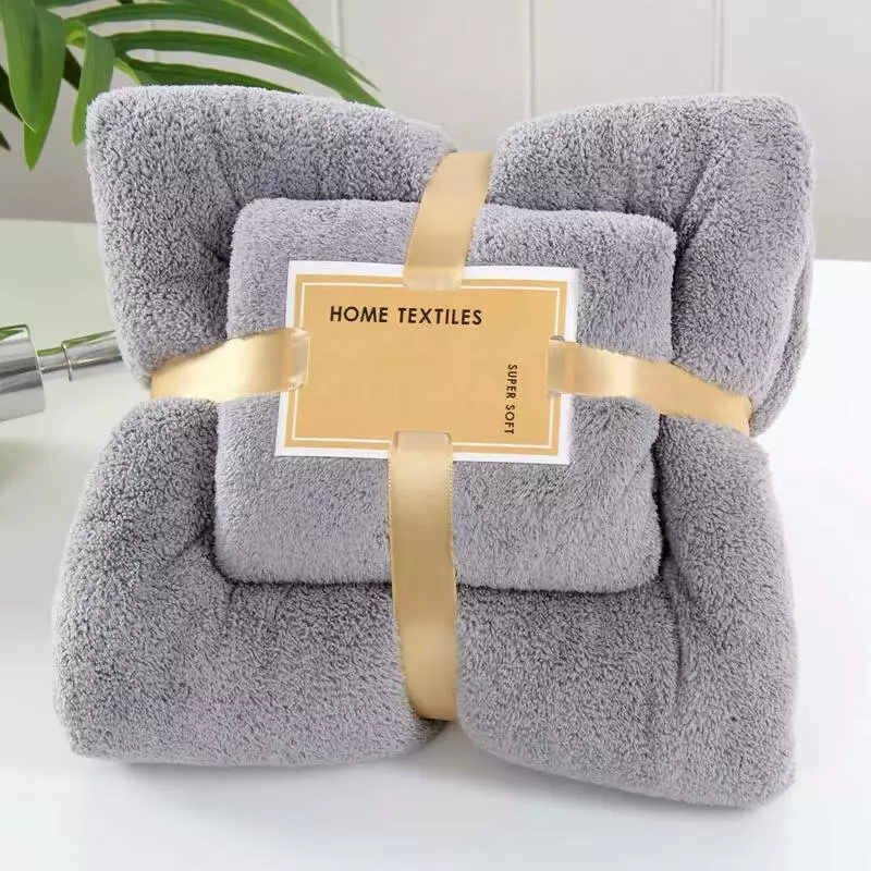 Набор 2 в 1 полотенец для душа и ванной для лица и тела,комплект банных флисовых полотенец 2 шт. цвет серый