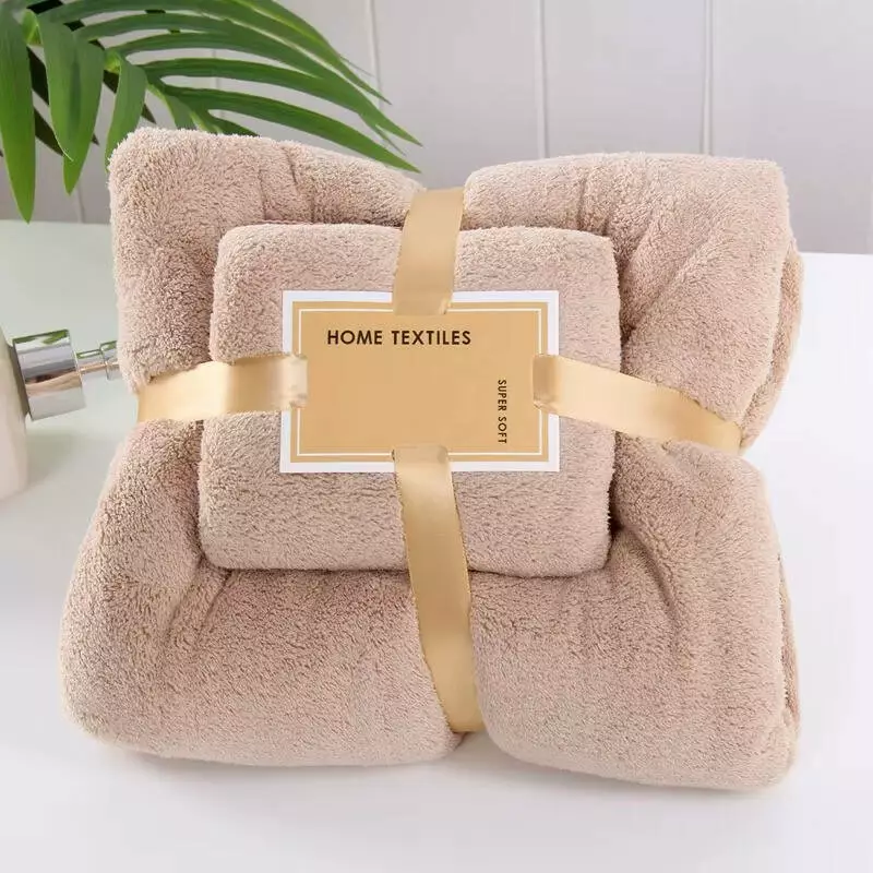 Набор 2 в 1 полотенец для душа и ванной для лица и тела,комплект банных флисовых полотенец цвет коричневый
