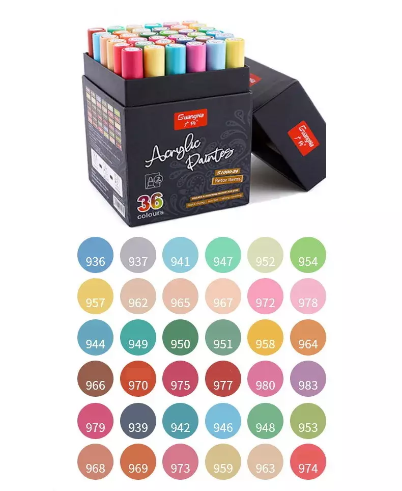 Набор акриловых маркеров GuangNa, 36 цветов, для рисования по дереву, стеклу, ткани, раскрасок и творчества