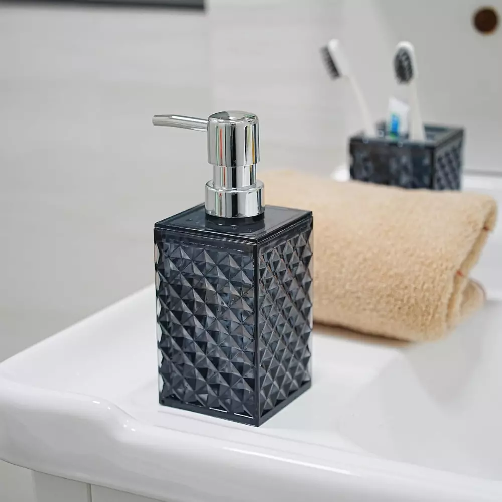 Стильный набор аксессуаров для ванной выполнен из прочного акрила в