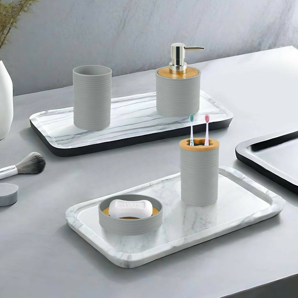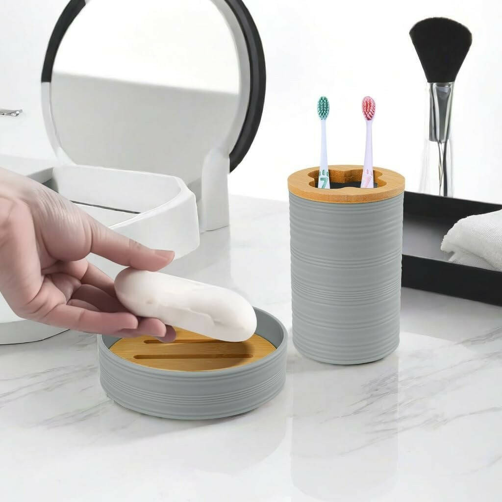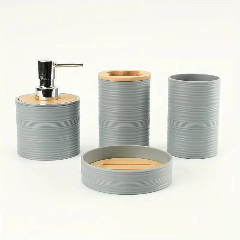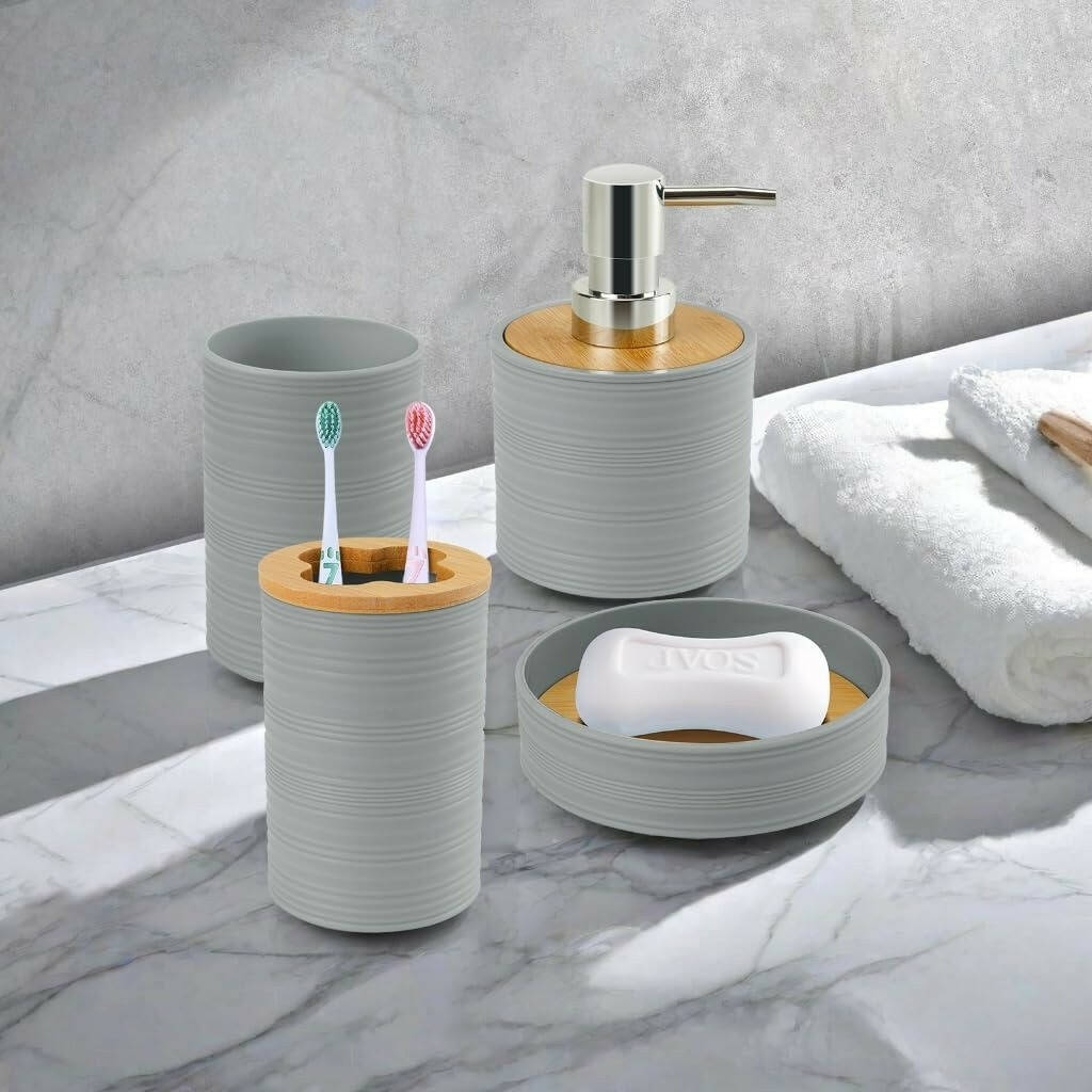 Набор аксессуаров 4в1 для ванной и душа, мыльница,дозатор для мыла, стаканы,пластик серый