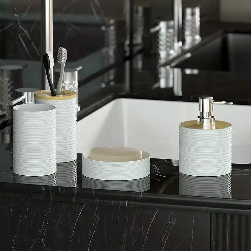Набор аксессуаров 4в1 для ванной и душа, мыльница,дозатор для мыла, стаканы,пластик,белый