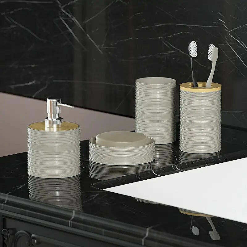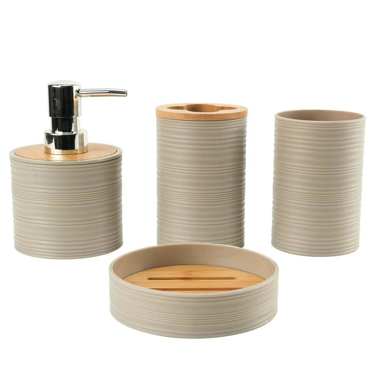 Набор аксессуаров 4в1 для ванной и душа, мыльница,дозатор для мыла, стаканы,пластик,бежевый