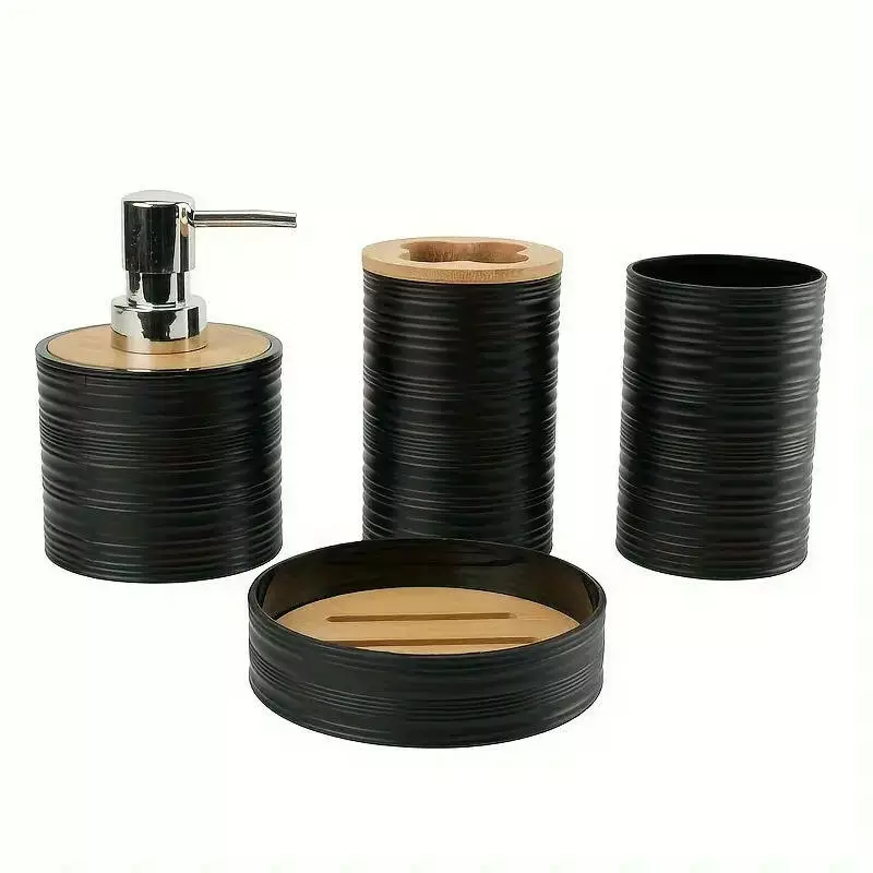 Набор аксессуаров 4в1 для ванной и душа, мыльница,дозатор для мыла, стаканы,пластик,черный