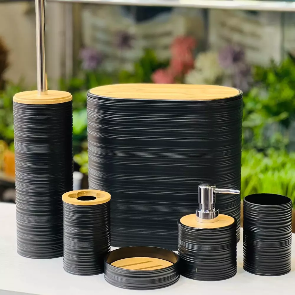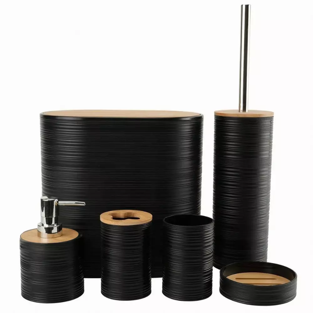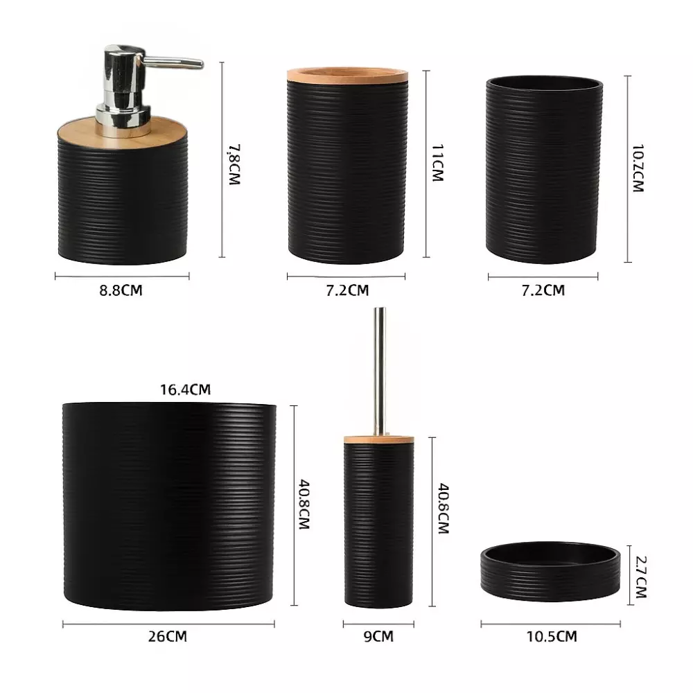 Набор аксессуаров 6в1 для ванной комнаты и душа, урна,дозатор для мыла, мыльница, стаканы,ёршик черный