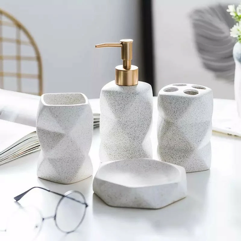 Керамический набор в ванную комнату состоит из 4 предметов: