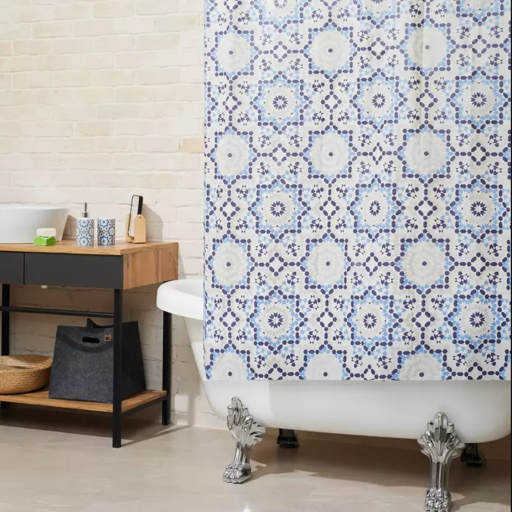 Шторка из PEVA размером 183 х 179 см, отличается повышенной износостойкостью и плотностью.