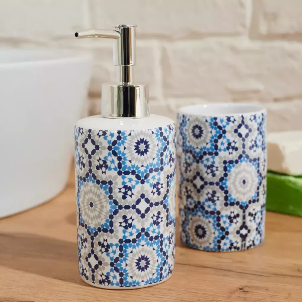 Стакан и дозатор для мыла из керамики, прочные и стильные.