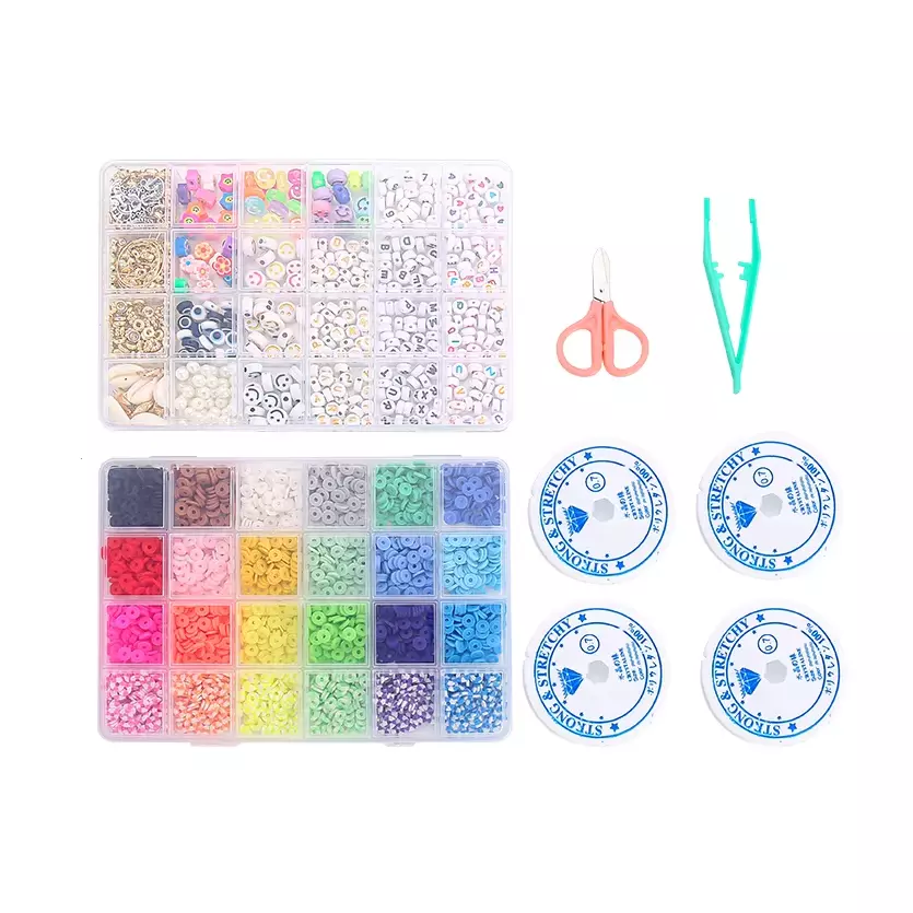 Набор включает удобный бокс-органайзер с ячейками, который помогает аккуратно хранить и сортировать все элементы. В комплекте представлен бисер 48 видов: цветные, перламутровые бусины, бусины с буквами английского алфавита и металлические элементы для стильных акцентов. Также в комплект входят безопасные ножницы и бобина с прозрачной силиконовой эластичной ниткой-резинкой 0,7 мм, которая отлично подходит для бижутерии.