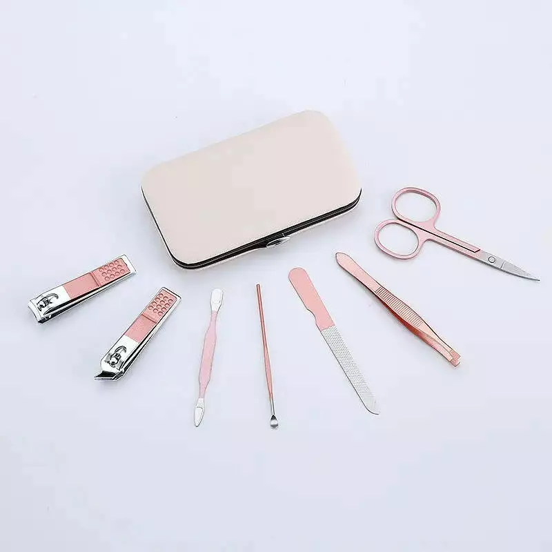 Набор для маникюра и педикюра 7 многофункциональных предметов,пилочка,ножницы,пинцет в кейсе цвет бежевый