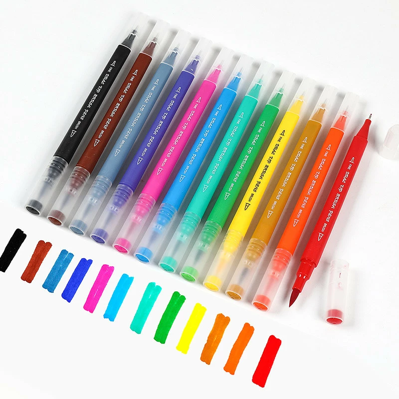 Чернила маркера на водной основе имеют высокопробный и насыщенный пигмент. Имеет удобный стержень в форме кисти и линера(лайнера), что позволяет наносить не только мельчайшие детали узоров, но и закрашивать большие части рисунков, создавать каллиграфические надписи.