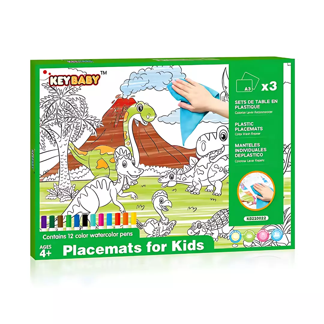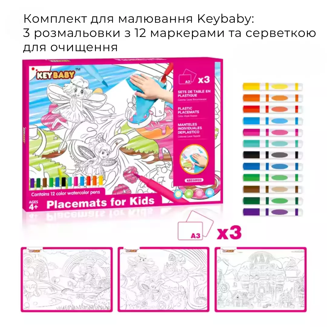 Набор для рисования, детские раскраски Keybaby, 3шт формат А3 с 12 маркерами и салфеткой для очистки, Green