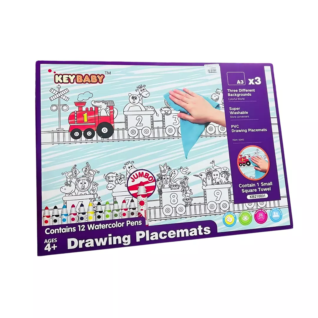 Набор для рисования, детские раскраски Keybaby, 3шт формат А3 с 12 маркерами и салфеткой для очистки, Purple