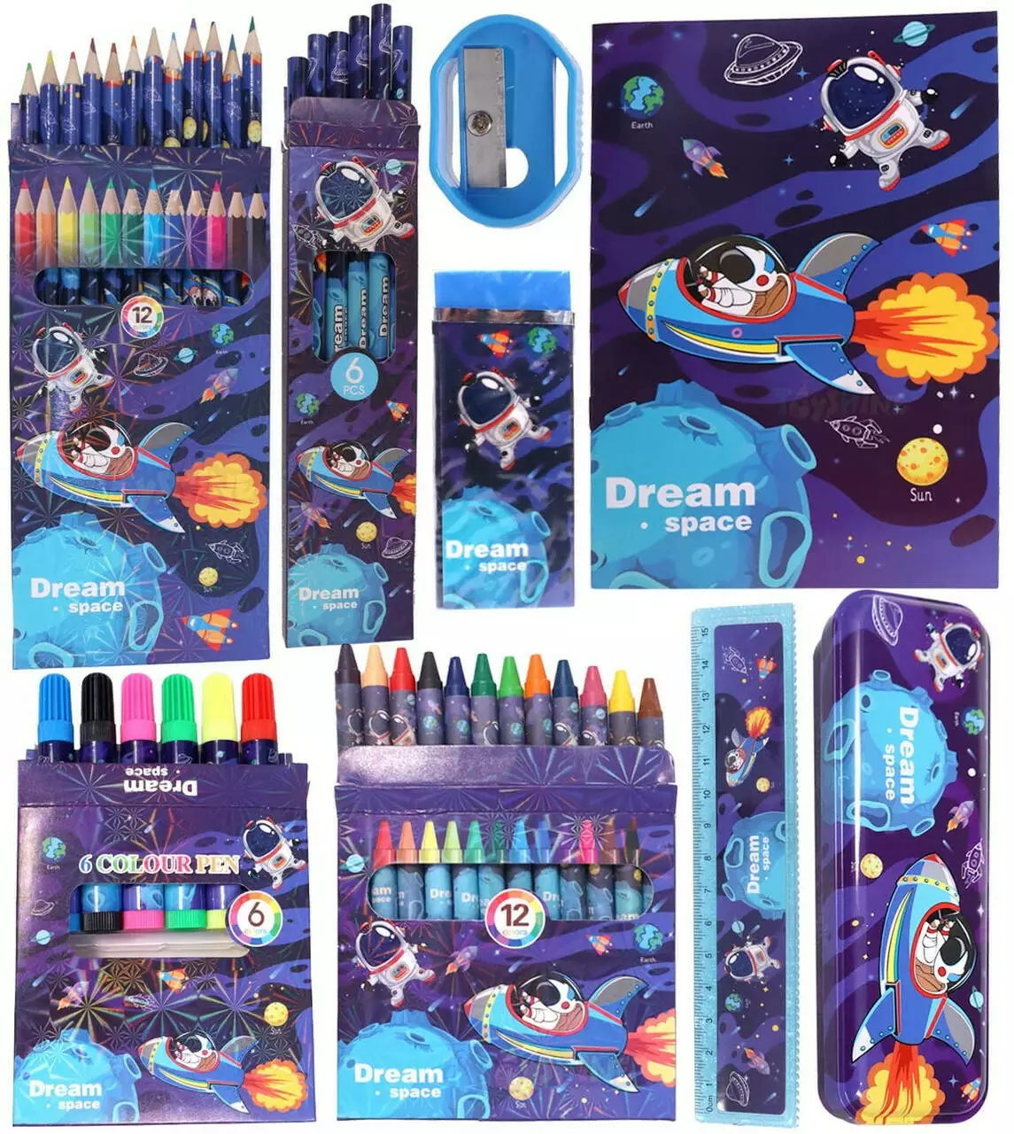 Набор для творчества и рисования,"Космос" подарочный набор канцелярии для детей пенал, карандаши, маркеры